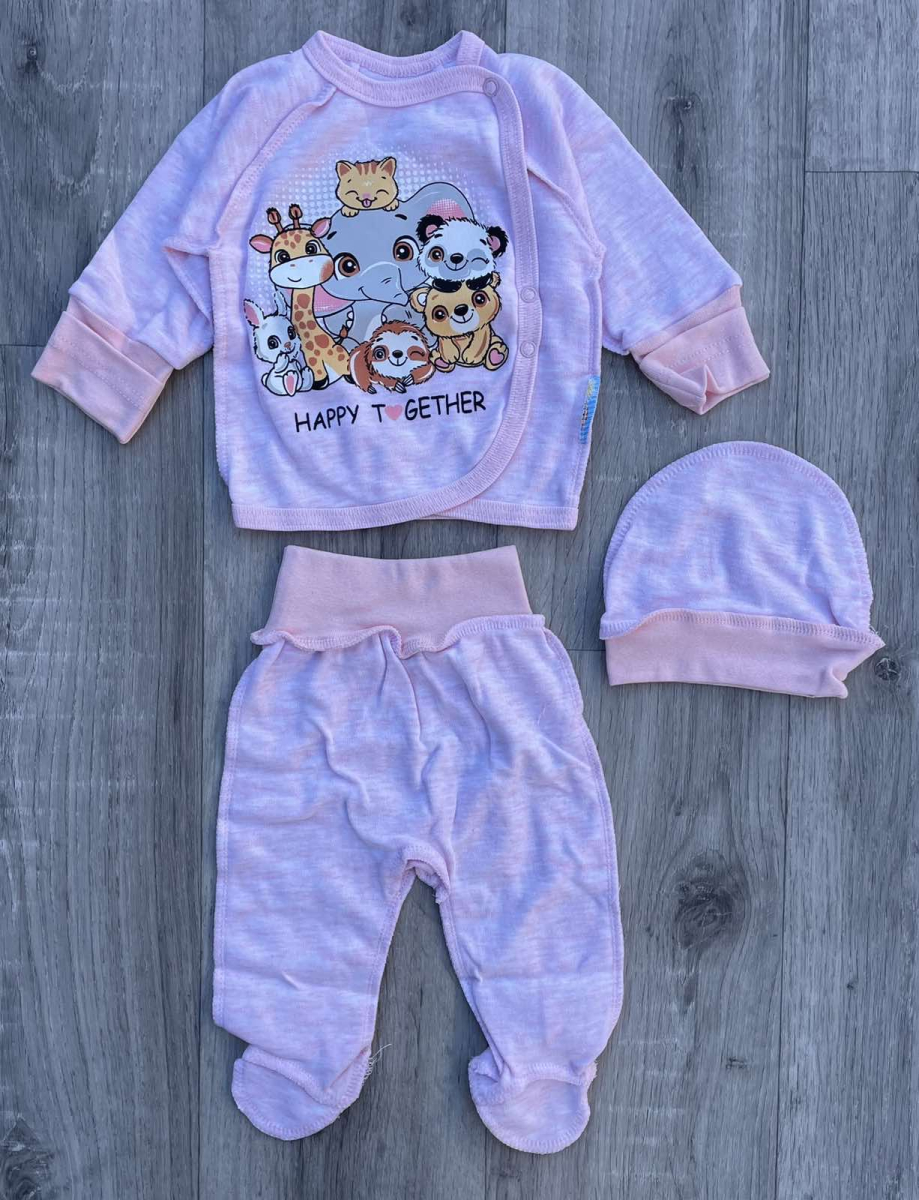 Комплект «Happy Together» розовый, девочка 0-3 месяцев оптом уп. - 4 шт.