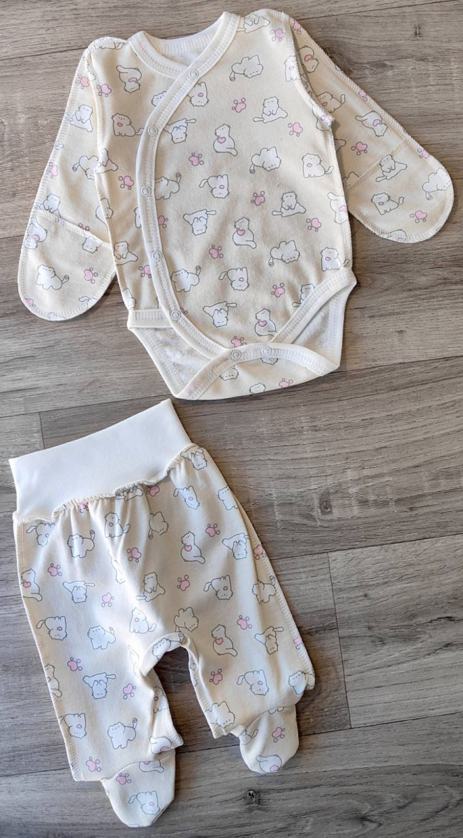 Комплект "Котята" бежевий, дівчинка 0-3 місяців оптом уп. - 2 шт.
