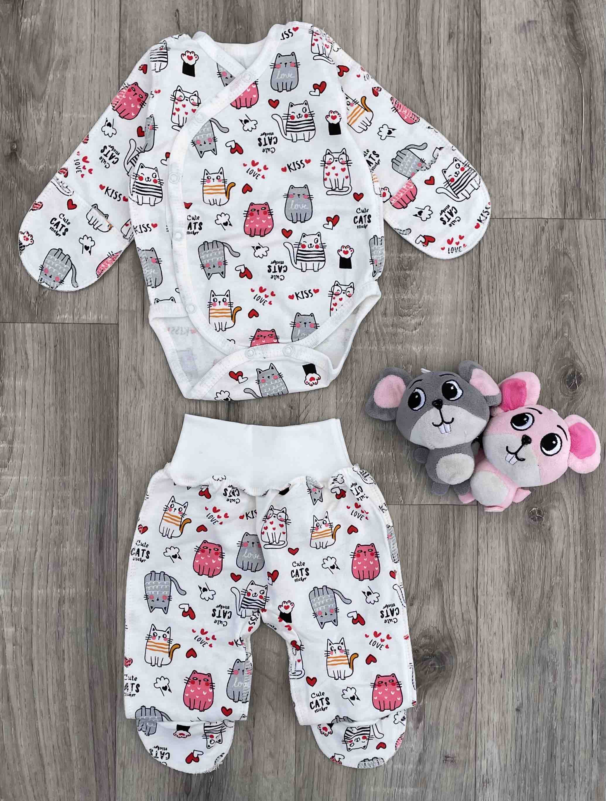 Комплект "Котята" белый, девочка 0-3 месяцев оптом уп. - 2 шт.