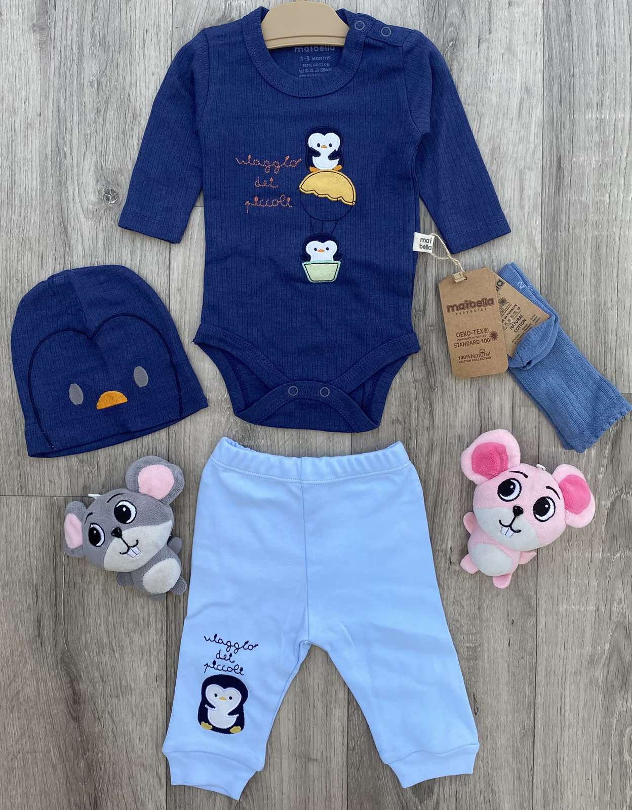 Комплект Maibella "Пингвины" синий, мальчик 0-3 месяцев оптом уп. - 2 шт.