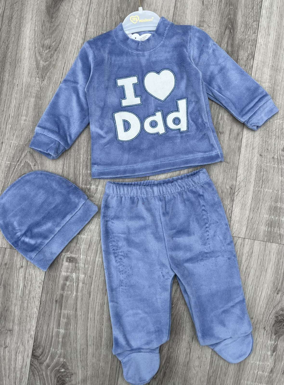 Комплект Minilove «I❤️Dad» синій, хлопчик 0-3-6 місяців оптом уп. - 3 шт.