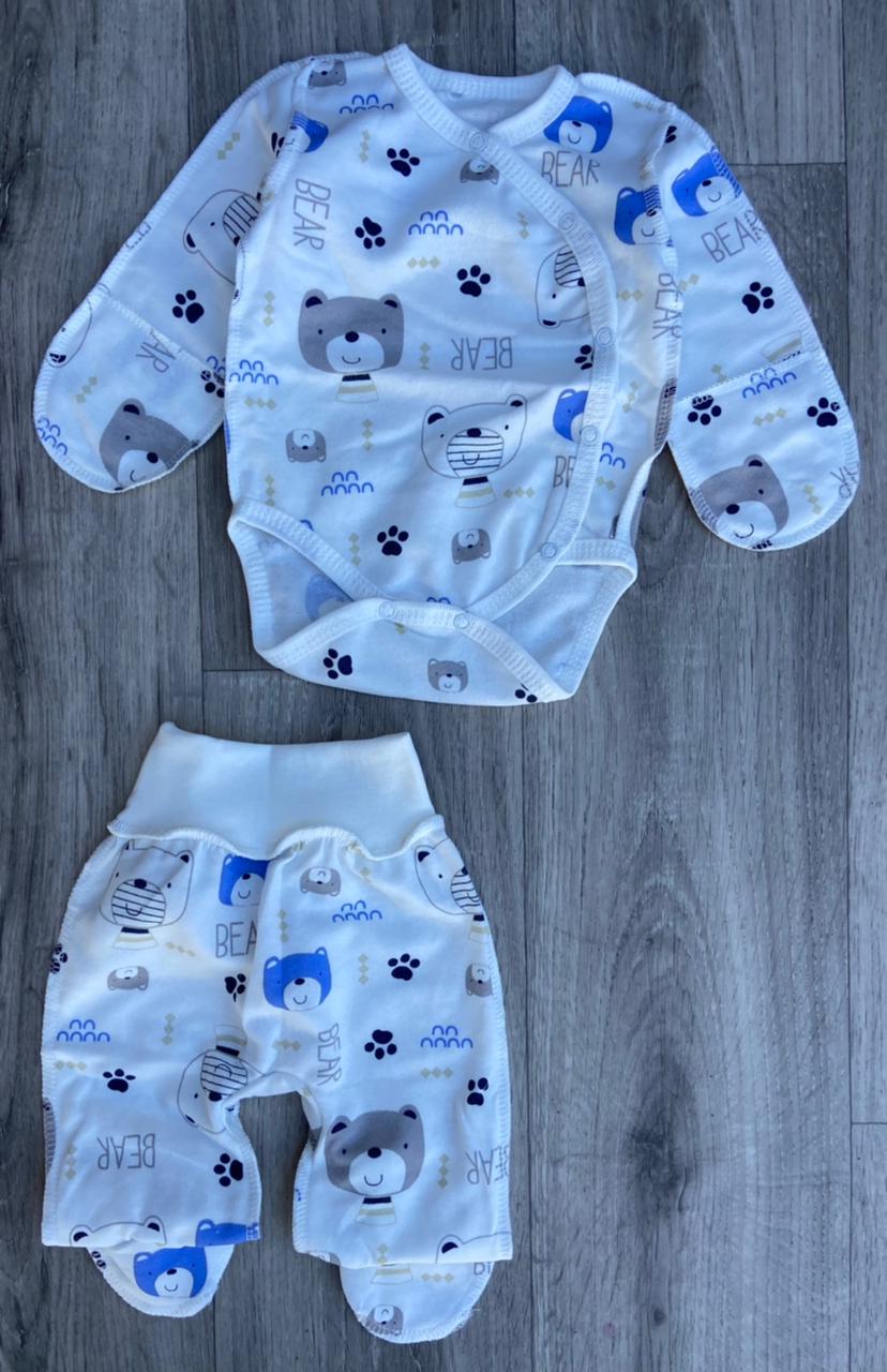 Комплект "Мишка" синий, мальчик 0-3 месяцев оптом уп. - 2 шт.