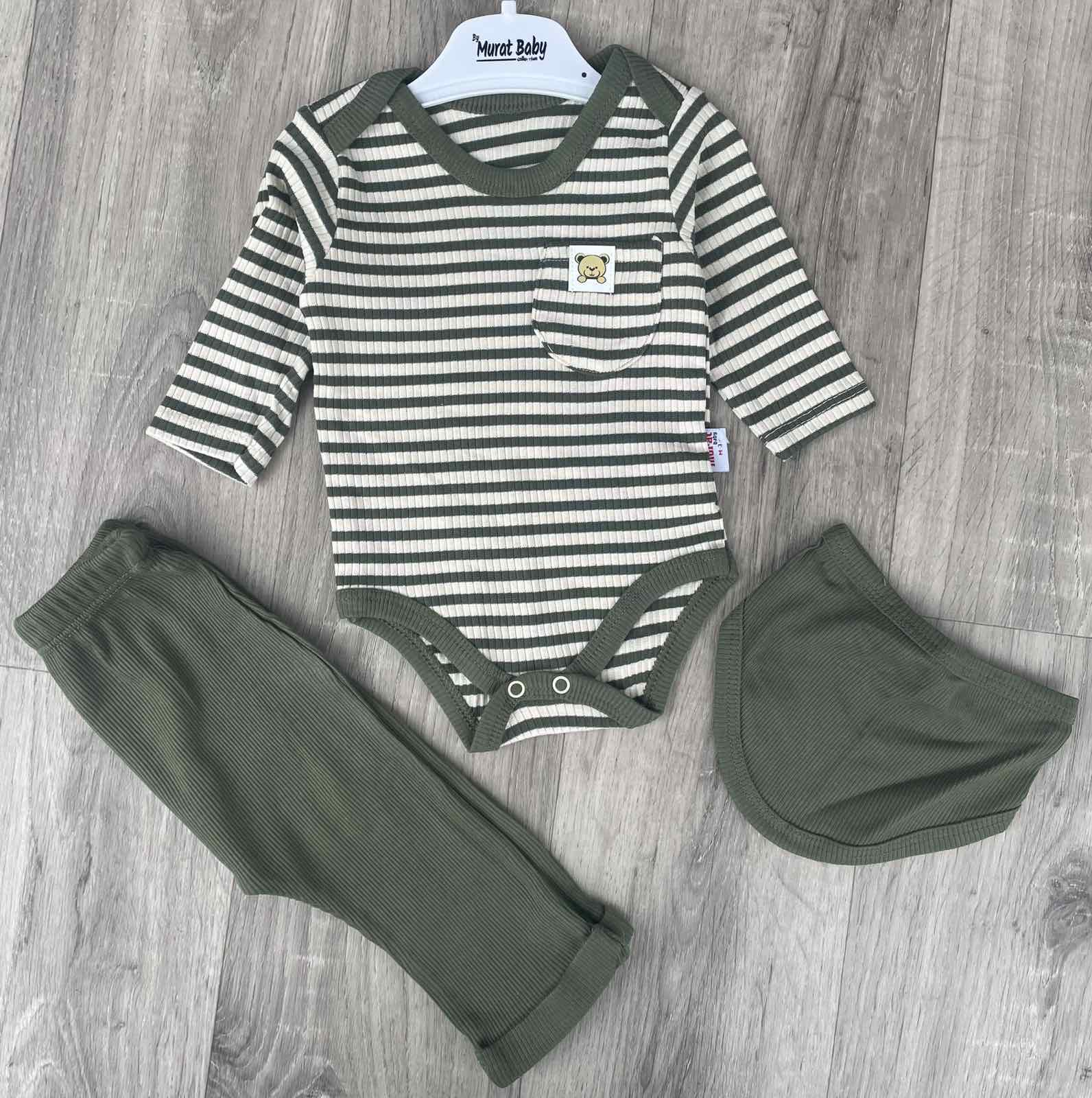 Комплект Murat «Полосочка» хаки, мальчик 3-6-9-12 месяцев оптом уп. - 4 шт.