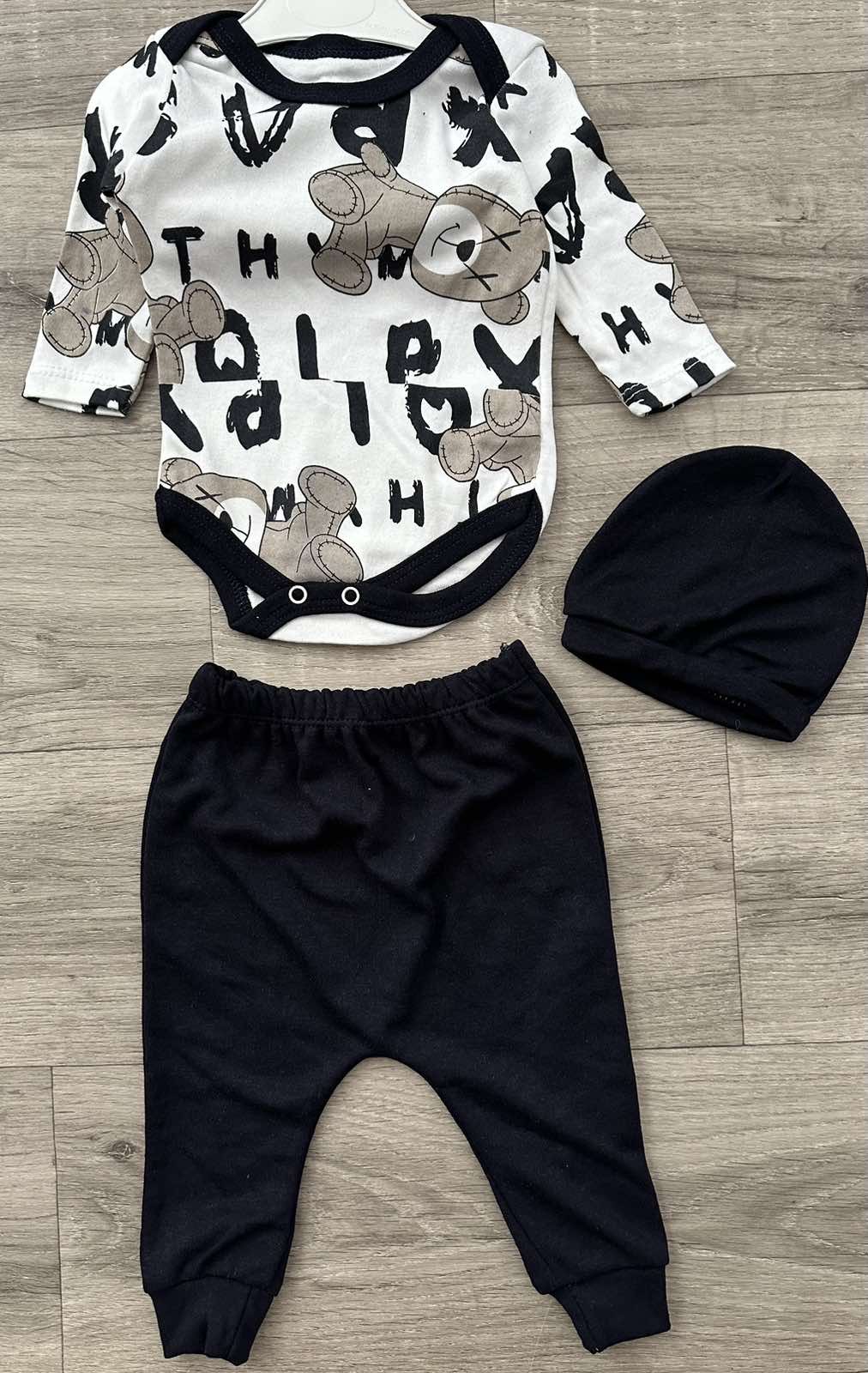 Комплект PitikoBaby «Мишка» чёрный, мальчик 3-6-9 месяцев оптом уп. - 3 шт.