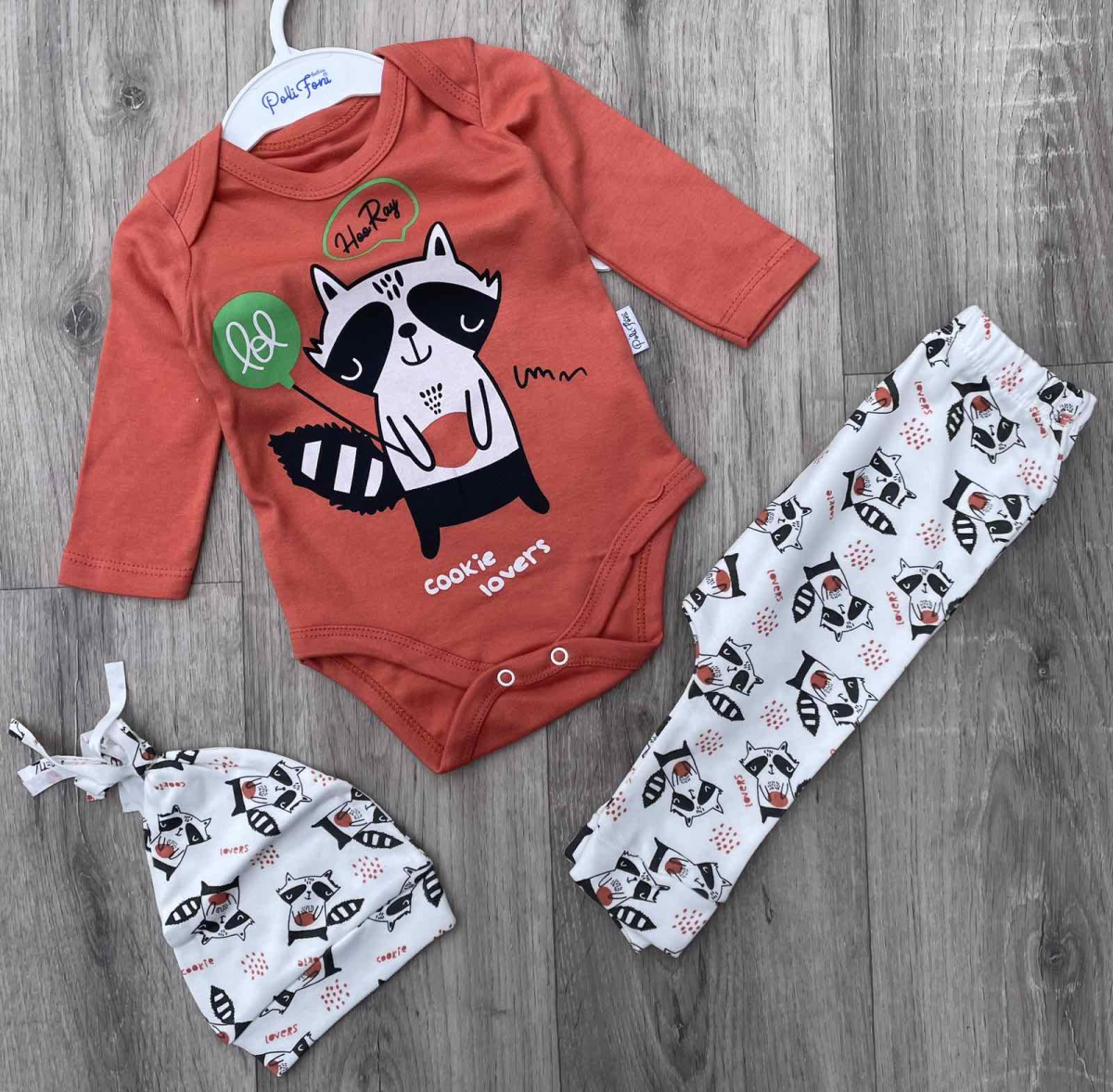Комплект Poli Foni «Енотик» терракотовый, мальчик 3-6 месяцев оптом уп. - 2 шт.