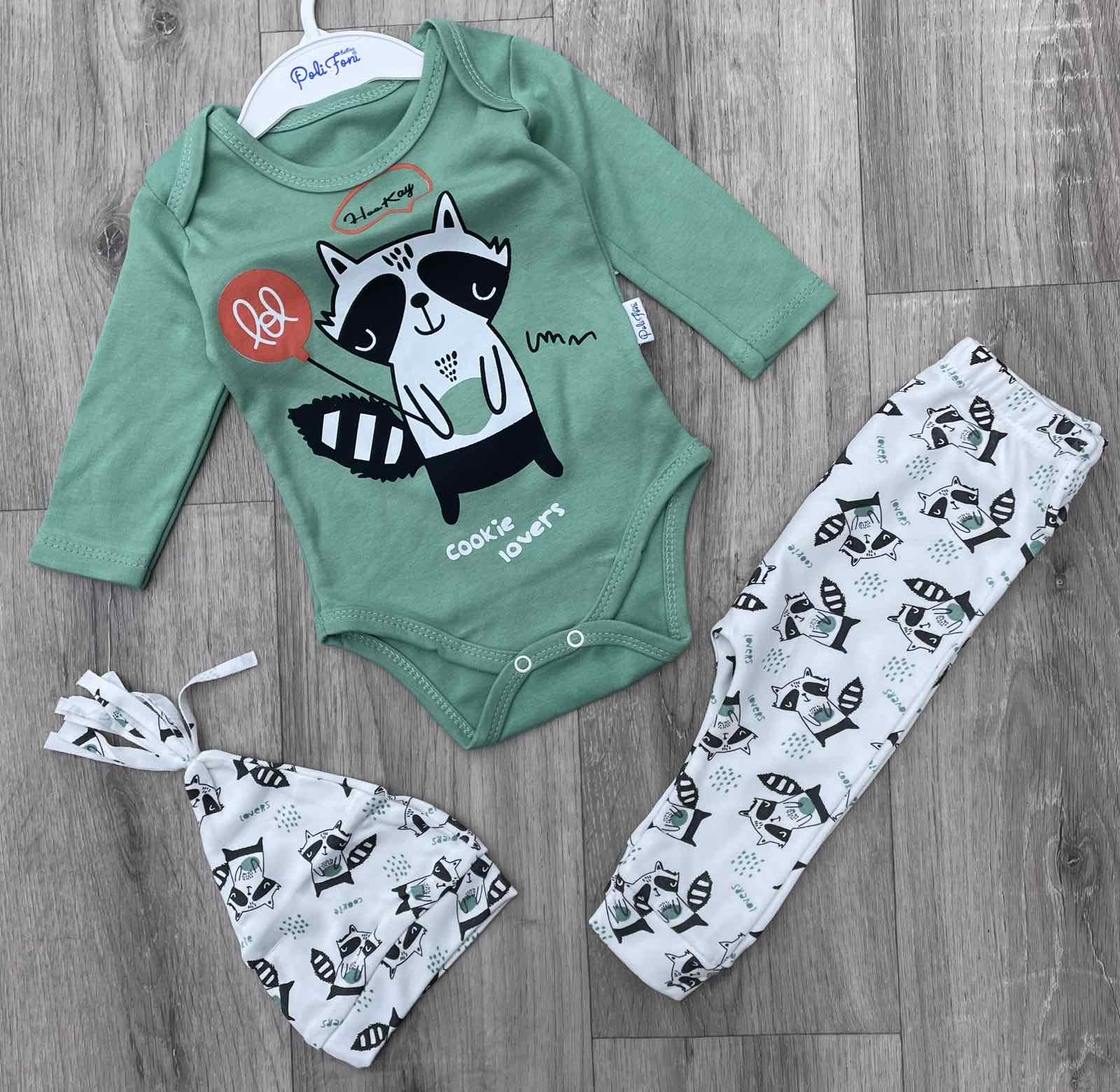 Комплект Poli Foni «Енотик» зелений, хлопчик 3-6 місяців оптом уп. - 2 шт.