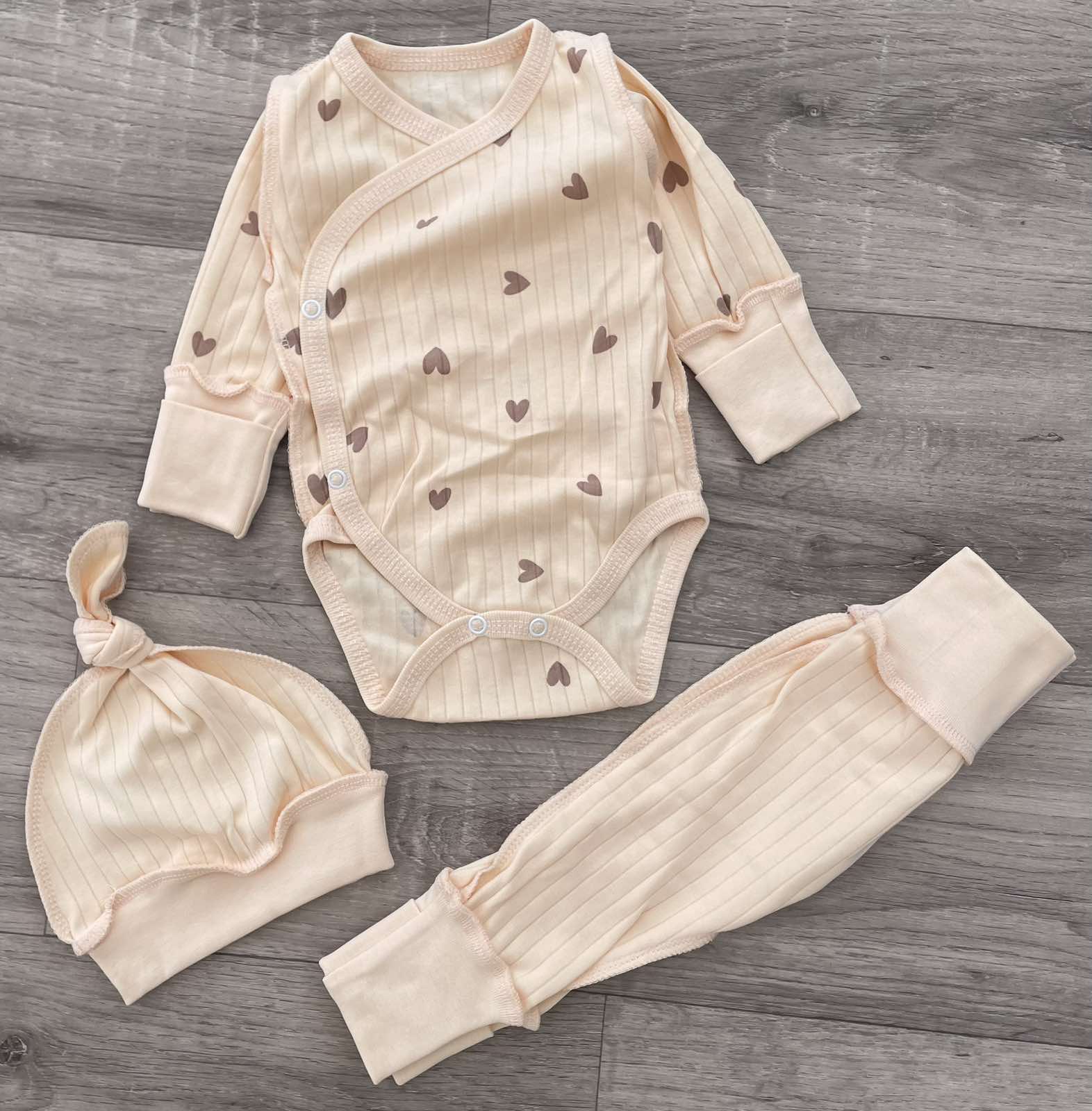 Комплект "Сердечки" бежевый, девочка 0-3 месяцев оптом уп. - 2 шт.