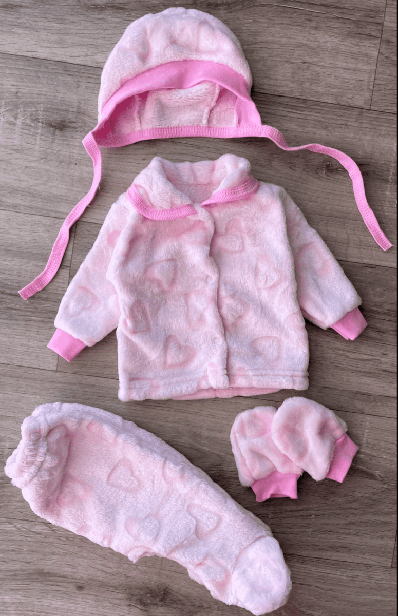 Комплект "Сердечки" розовый, девочка 0-3 месяцев оптом уп. - 4 шт.