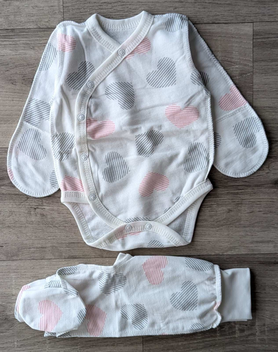 Комплект «Сердечки» молочный, девочка 0-3 месяцев оптом уп. - 2 шт.