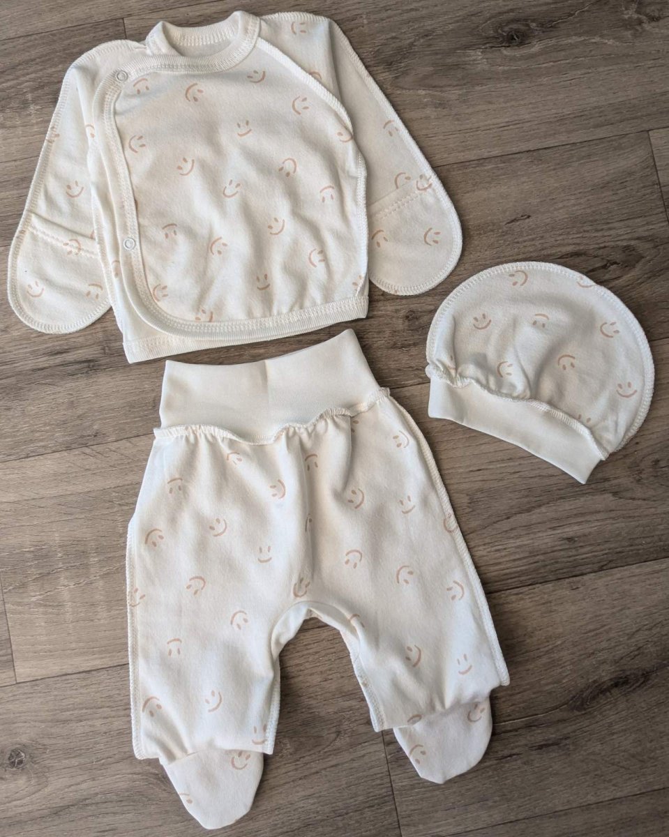 Комплект «смайлик» белый, унисекс 0-3 месяцев оптом уп. - 2 шт.