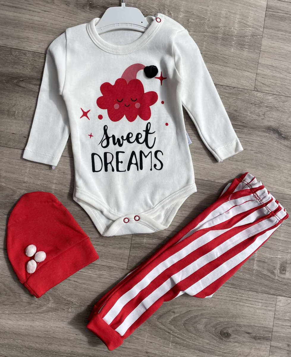 Комплект Teddy «Sweet dreams» красный, девочка 3-6-9-12 месяцев оптом уп. - 4 шт.