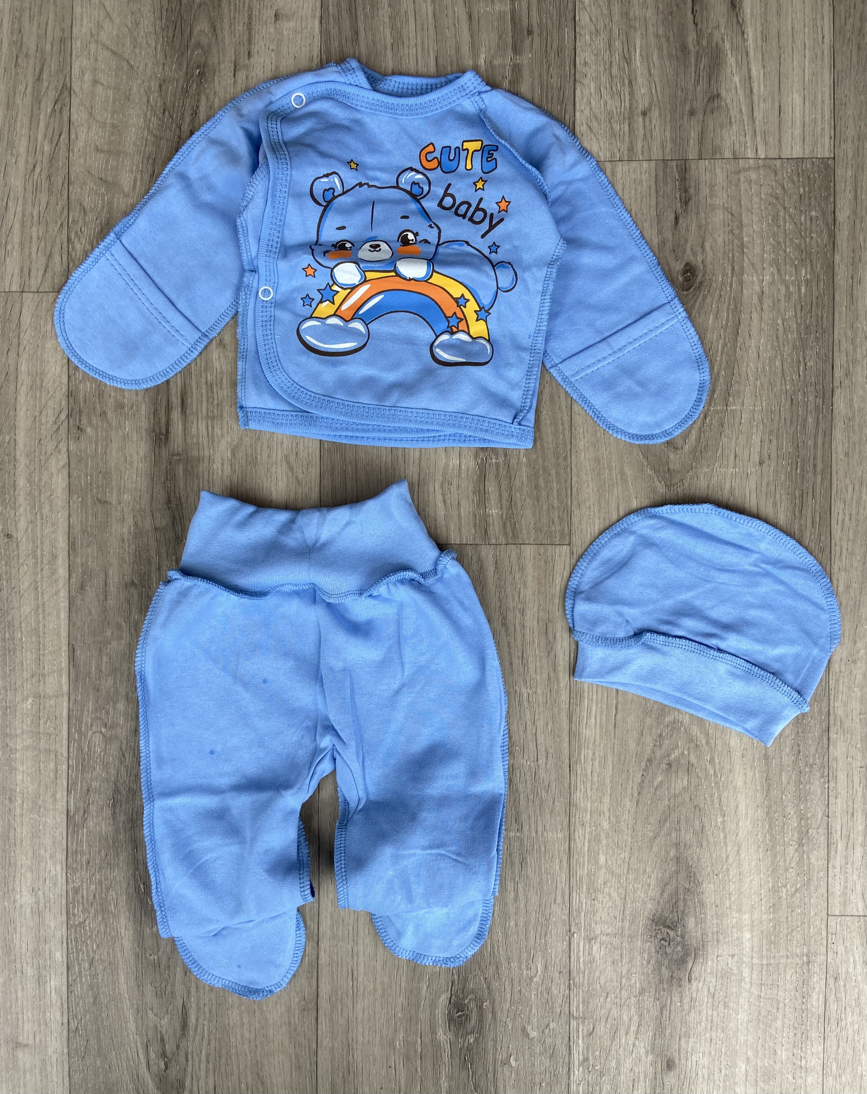 Комплект "Ведмедь", голубой, мальчик 0-3 месяцев оптом уп. - 2 шт.