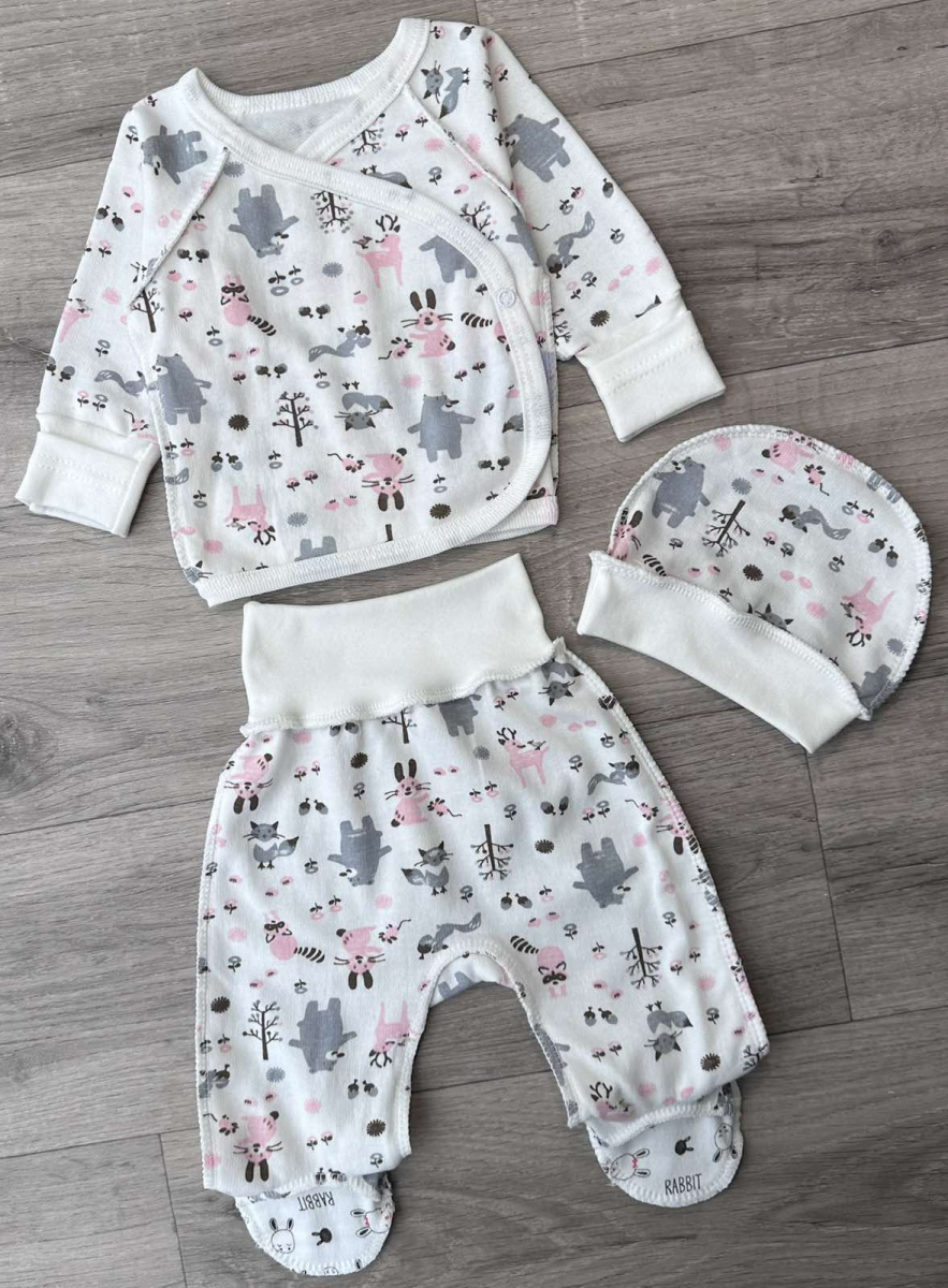Комплект "Зайка + медведь" молочный микс рисунков, унисекс 0-3 месяцев оптом уп. - 4 шт.
