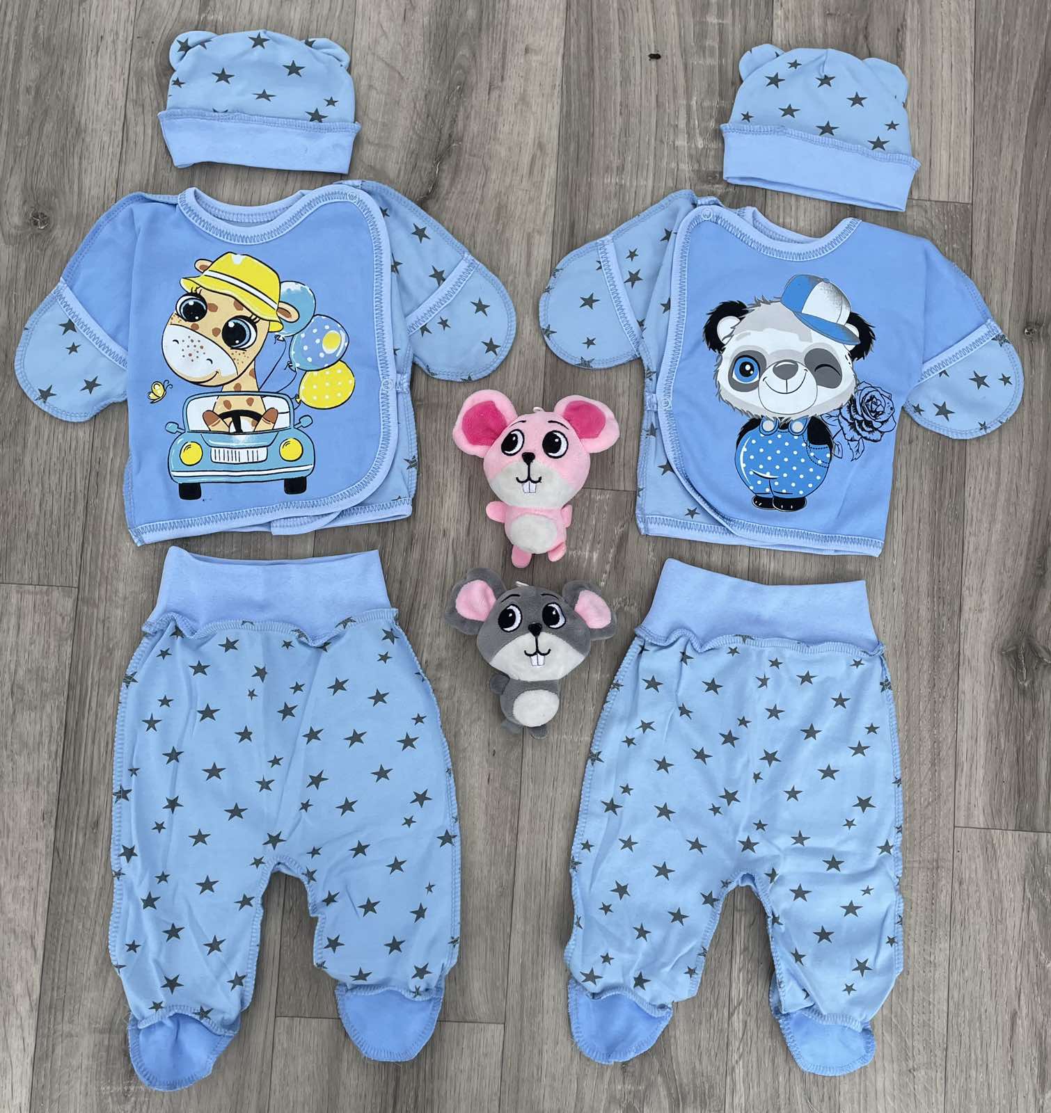 Комплект "Зверюшки" голубой, мальчик 0-3 месяцев оптом уп. - 4 шт.