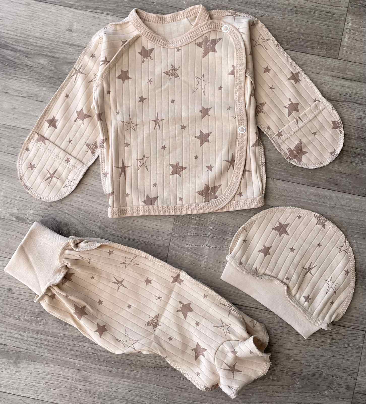 Комплект "Звездочки" бежевый унисекс 0-3 месяцев оптом уп. - 2 шт.