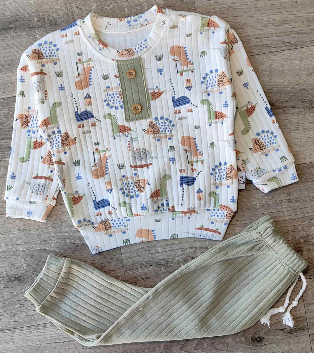 Костюм Anilco "Dino" зеленый (оливка), мальчик 3-6-9 месяцев оптом уп. - 3 шт.