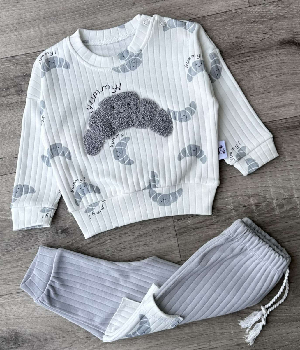 Костюм Anilco "Yummy" серый, мальчик 3-6-9 месяцев оптом уп. - 3 шт.