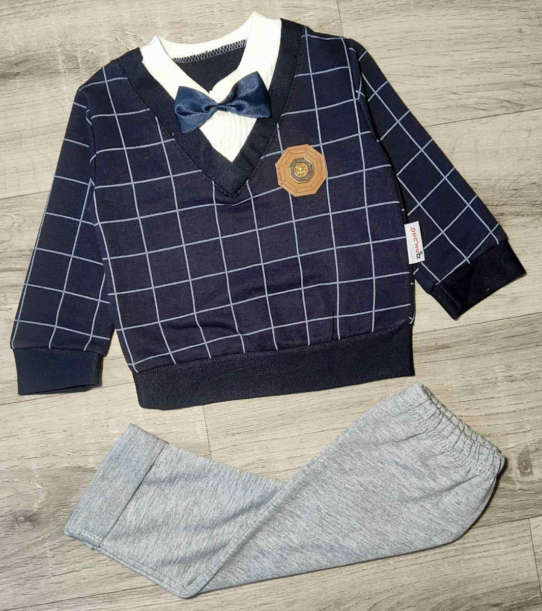 Костюм Benzer ''Kлеточка" синий, мальчик 6-9-12 месяцев оптом уп. - 3 шт.