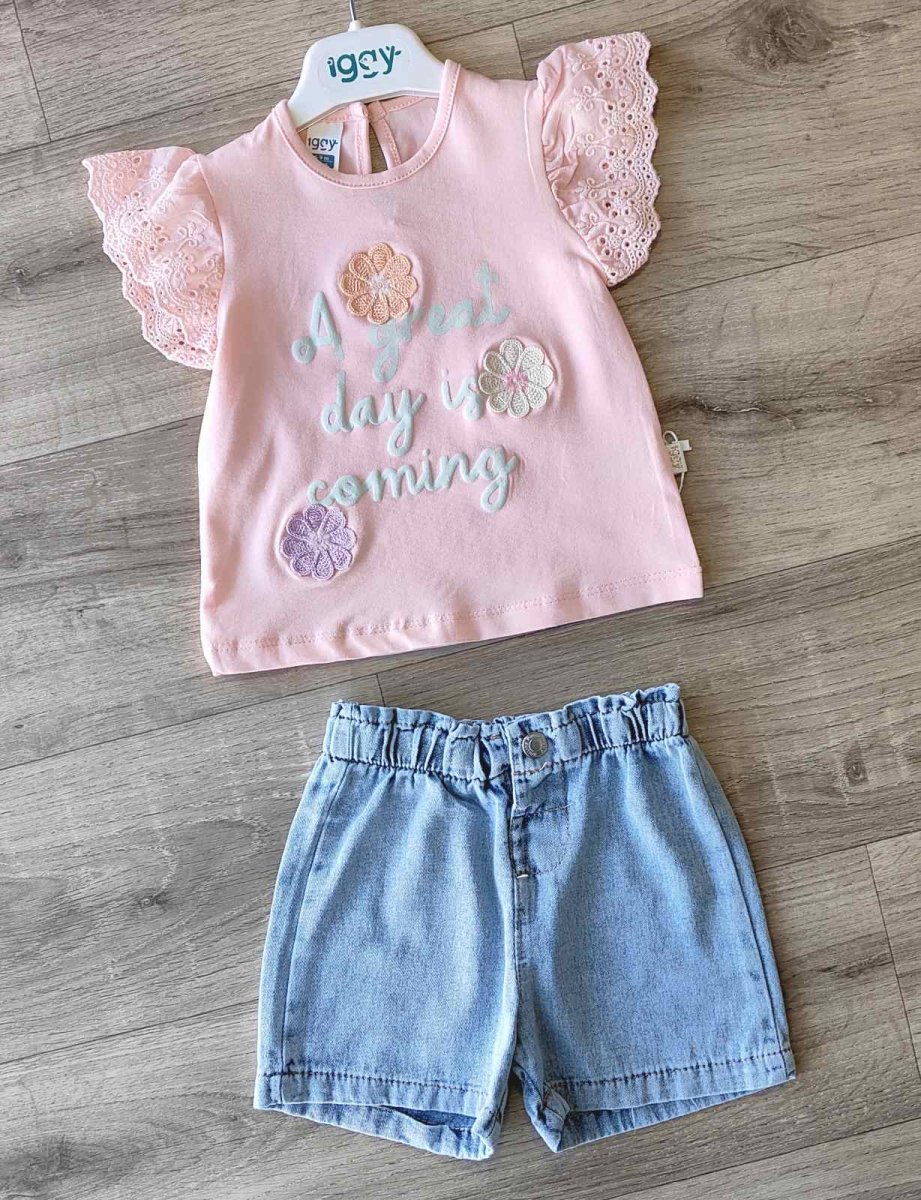 Костюм Iggy "Great day" розовый, девочка 9-12-18-24 месяцев оптом уп. - 4 шт.