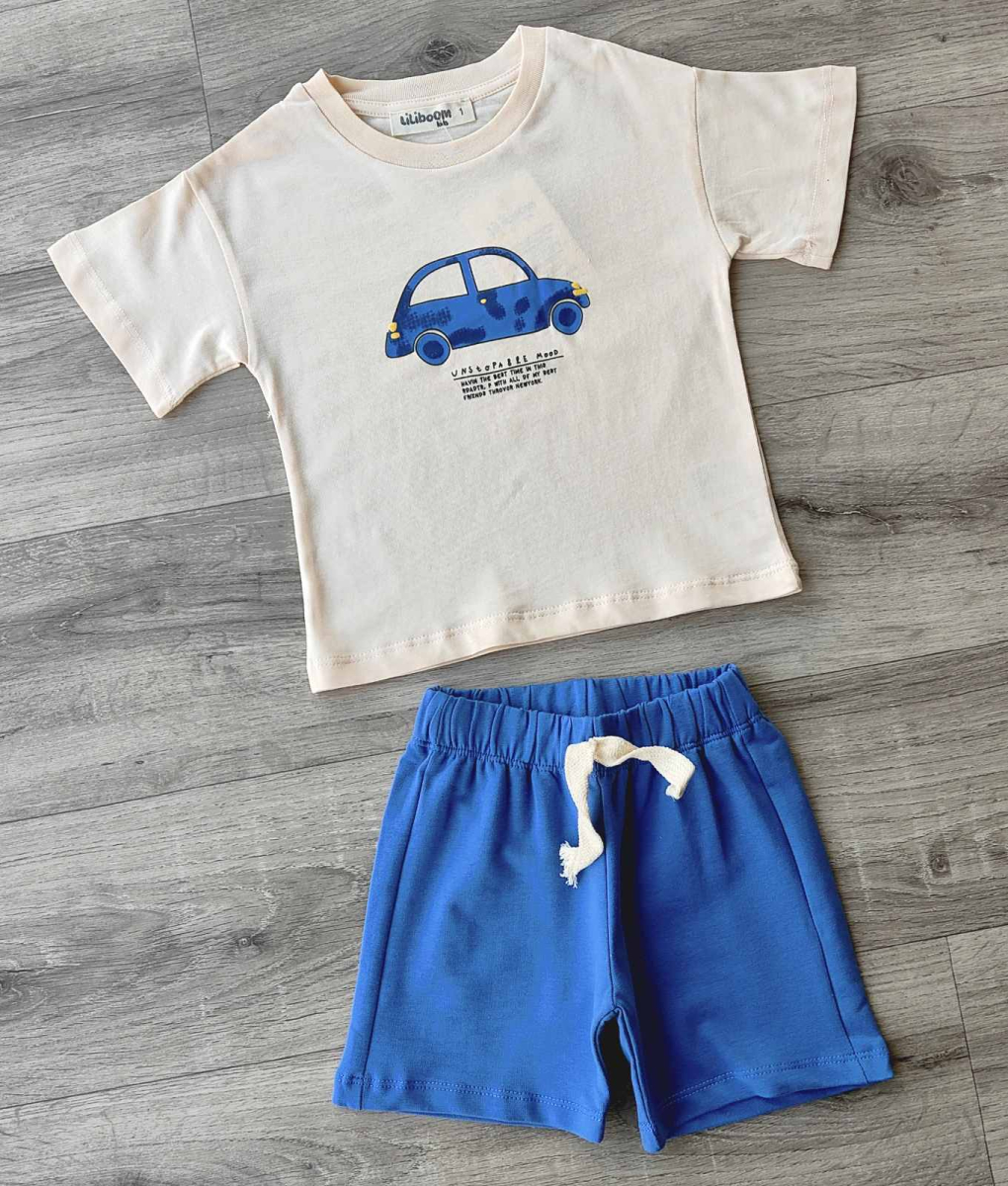 Костюм Liliboom "Машинка" синий, мальчик 1-2-3-4 лет оптом уп. - 4 шт.
