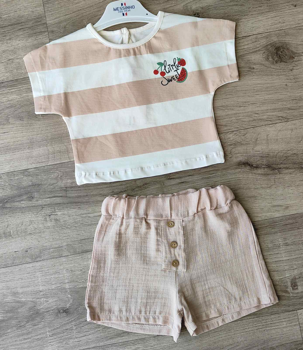 Костюм Messinho "Little sweet" бежевый, девочка 9-12-18-24 месяцев оптом уп. - 4 шт.