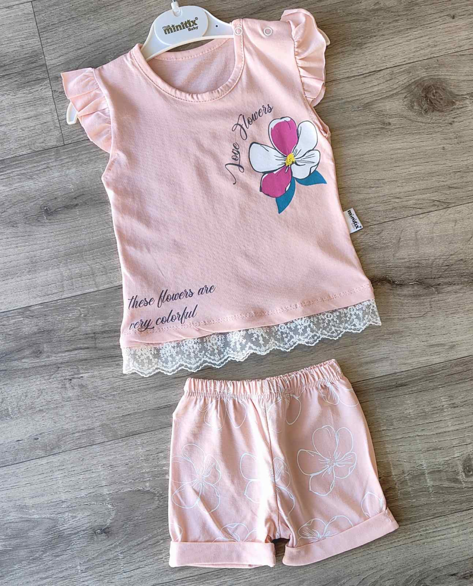 Костюм Minitix "Love flowers" персиковый, девочка 9-12-18-24 месяцев оптом уп. - 4 шт.