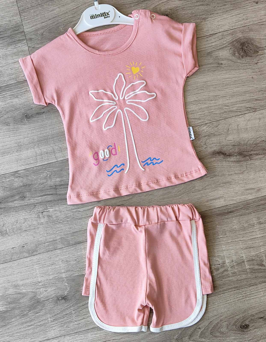 Костюм Minitix "Пальма" кораловый, девочка 9-12-18-24 месяцев оптом уп. - 4 шт.