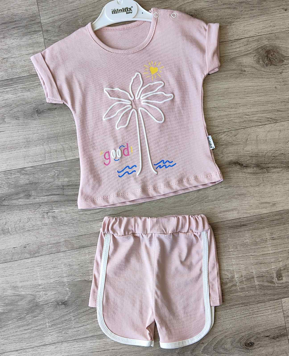 Костюм Minitix "Пальма" розовый(пудра), девочка 9-12-18-24 месяцев оптом уп. - 4 шт.