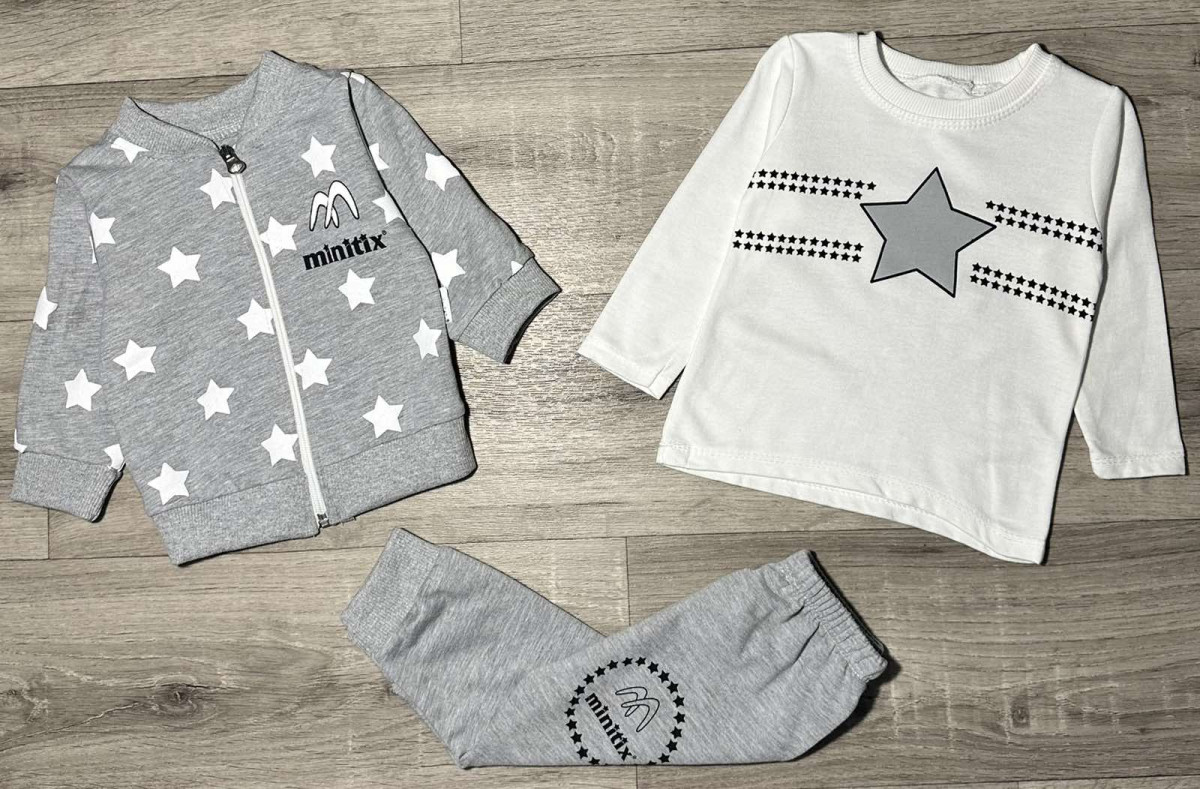 Костюм Minitix "Звездочка" серый(темный), мальчик 9-12-18-24 месяцев оптом уп. - 4 шт.