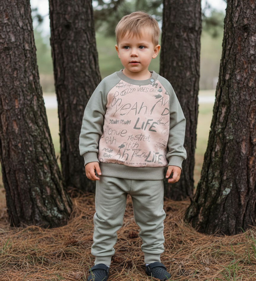 Костюм Moeboon "Life", зеленый, мальчик 3-6-9-12 месяцев оптом уп. - 4 шт.