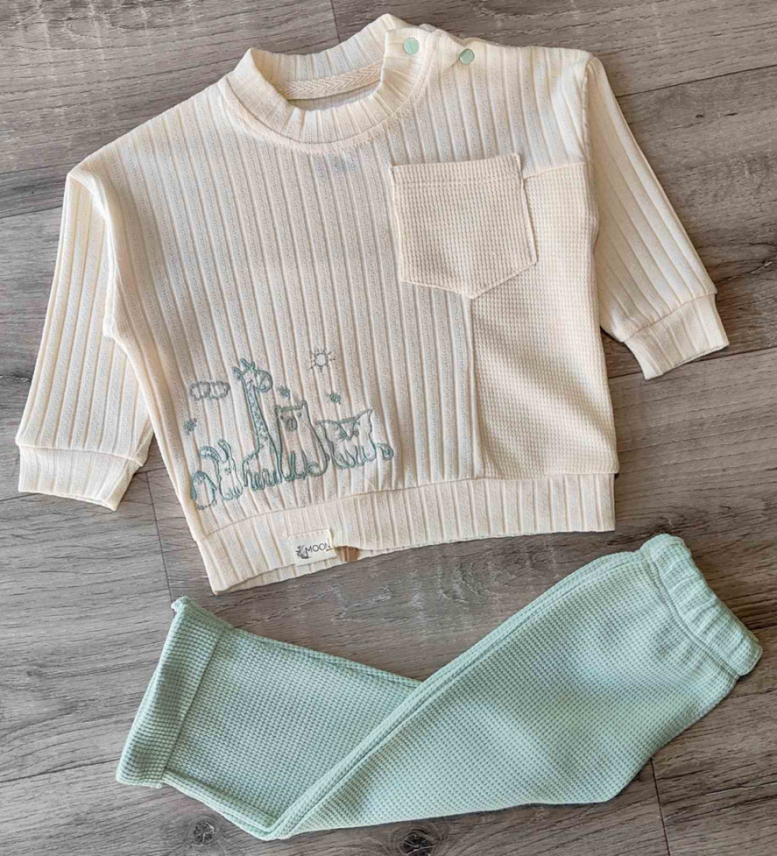 Костюм Moon "Зверыки", зеленый, мальчик 3-6-9-12-18 месяцев оптом уп. - 5 шт.