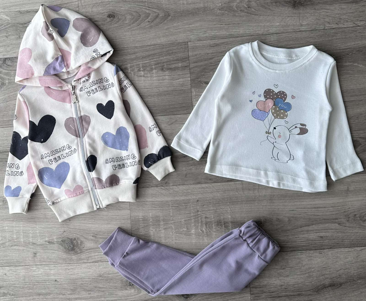 Костюм Partner "Love You" фиолетовый, девочка 9-12-18-24 месяцев оптом уп. - 4 шт.