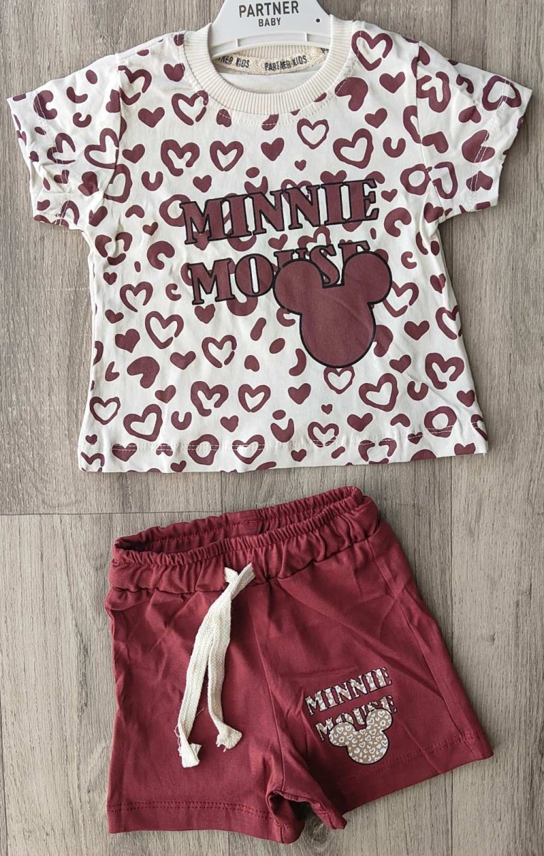 Костюм Partner «сердечки» бордовый, девочка 9-12-18-24 месяцев оптом уп. - 4 шт.