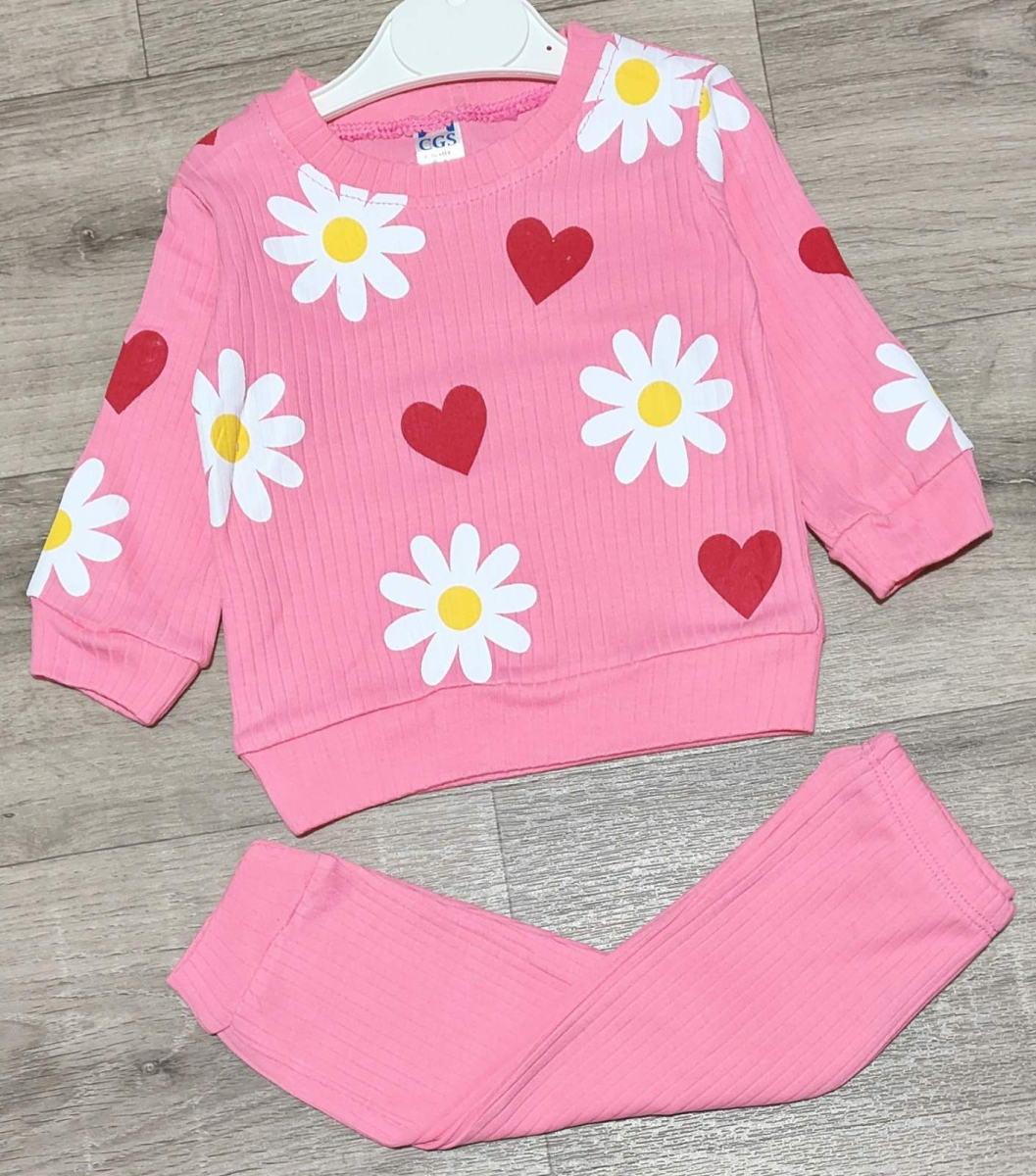 Костюм СGS "Цветочки" розовый (темный)), девочка 6-9-12-18 месяцев оптом уп. - 4 шт.