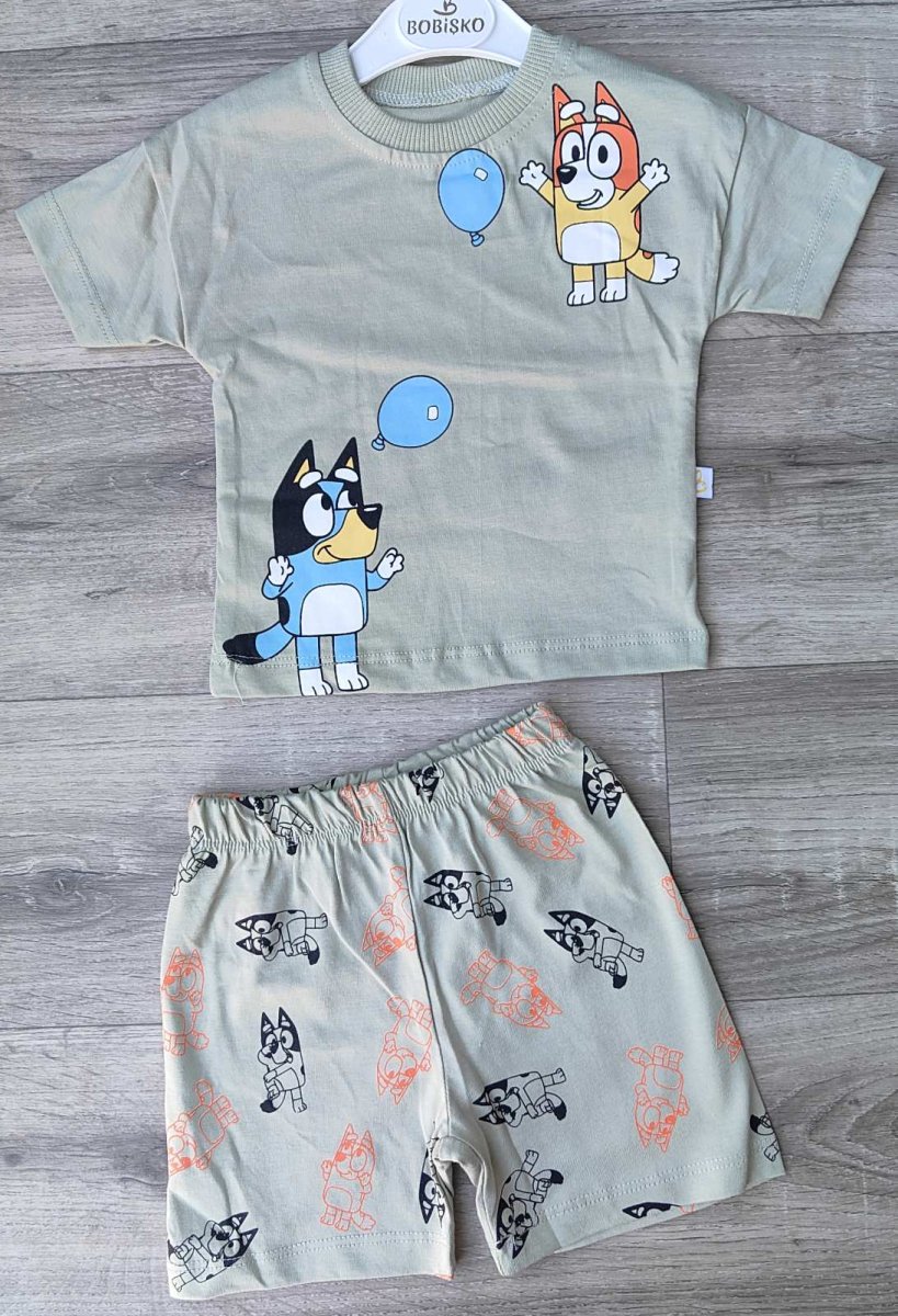 Костюм "Собачки" салатовый, мальчик 9-12-18-24 месяцев оптом уп. - 4 шт.