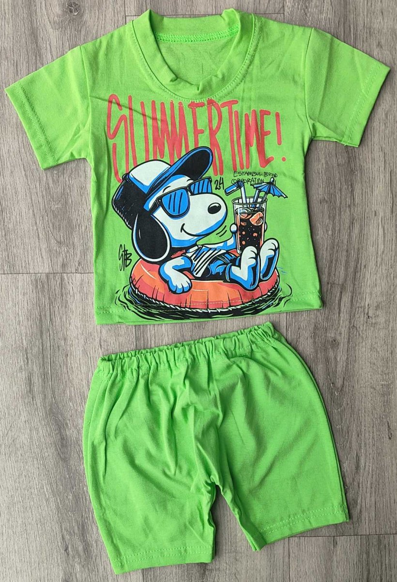 Костюм «Summer time!» салатовый, мальчик 6-9-12-24 месяцев оптом уп. - 4 шт.