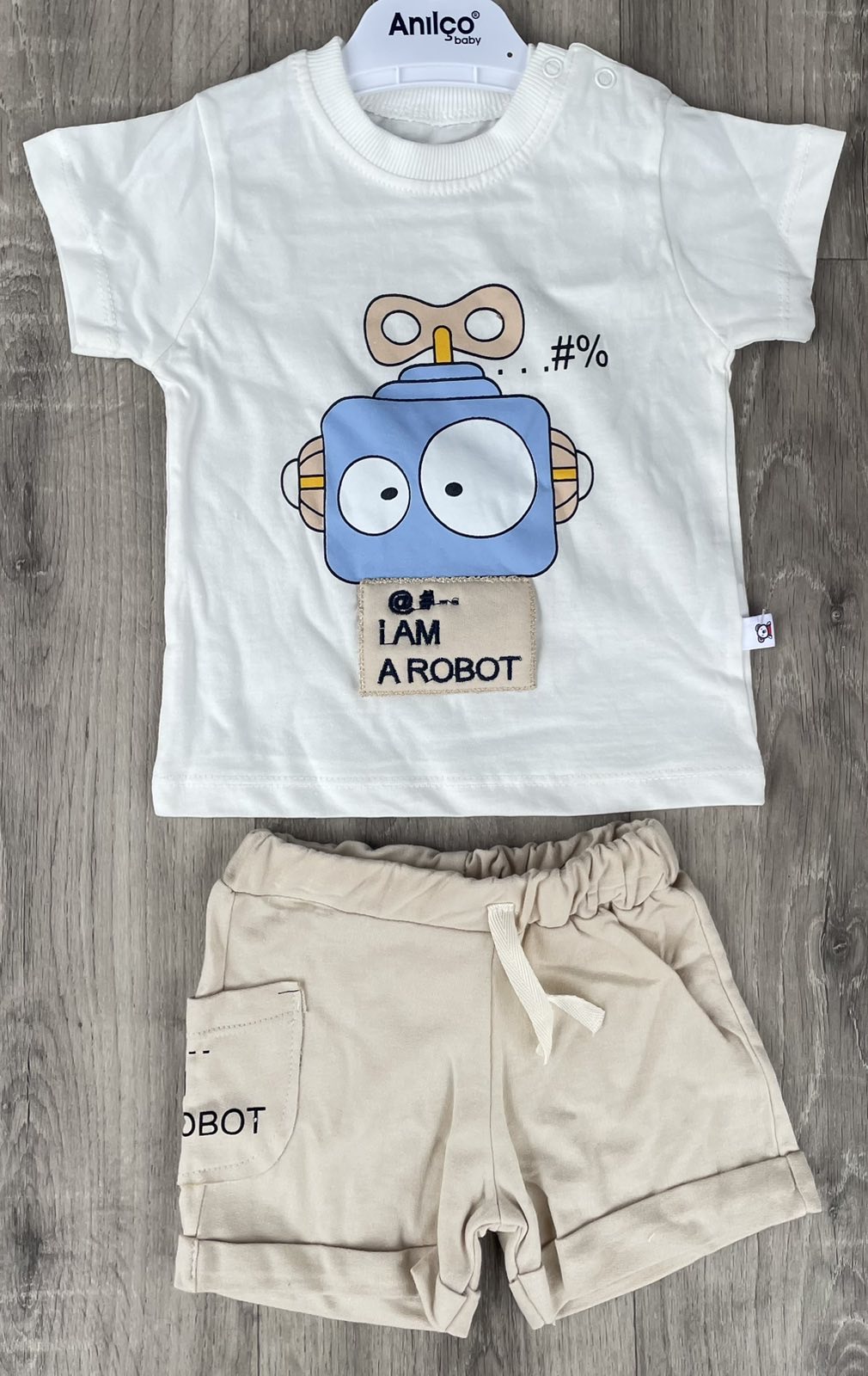 Костюм Anilco «Robot» молочный, мальчик 6-12-18-24 месяцев оптом уп. - 4 шт.