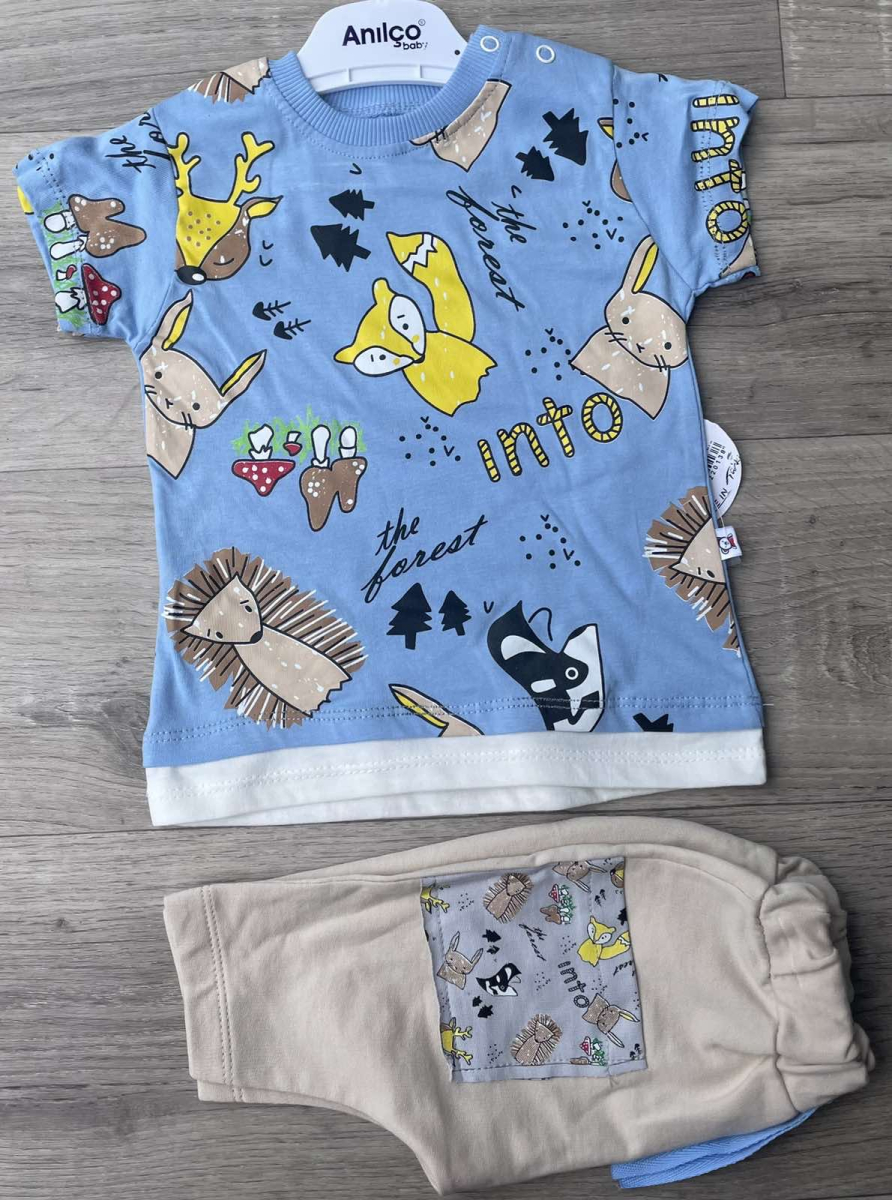 Костюм Anilco «Животные» голубой, мальчик 6-12-18-24 месяцев оптом уп. - 4 шт.