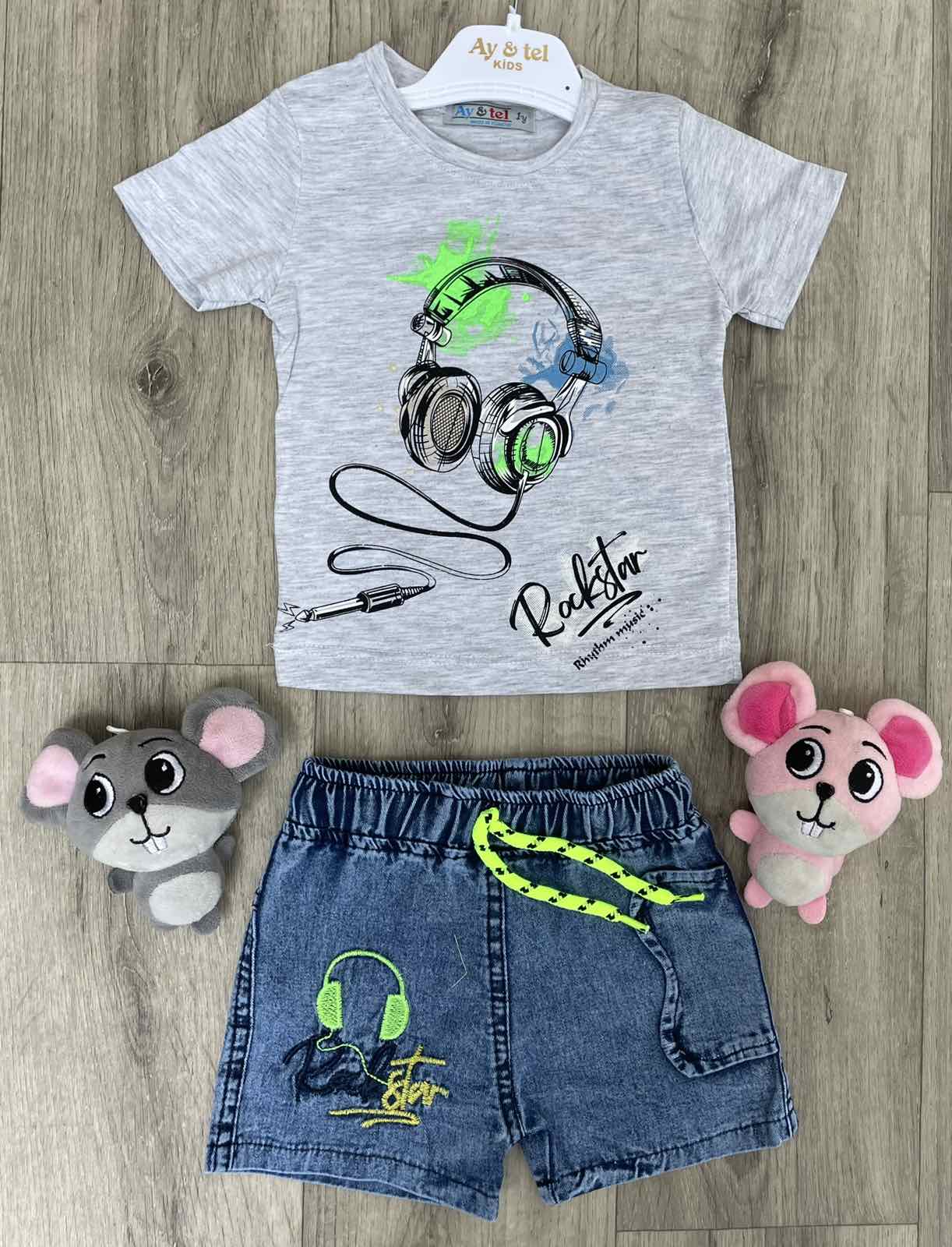 Костюм AY & TEL "Наушники" серый, мальчик 1-2-3-4 года оптом уп. - 4 шт.