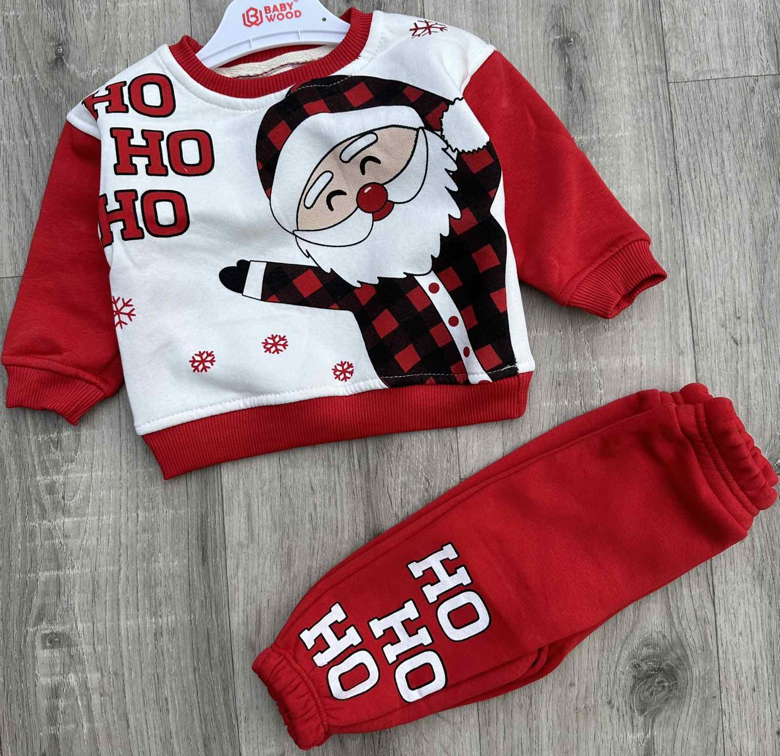 Костюм BabyWood «Ho Ho Ho» красный, унисекс 6-9-12-18 месяцев оптом уп. - 4 шт.