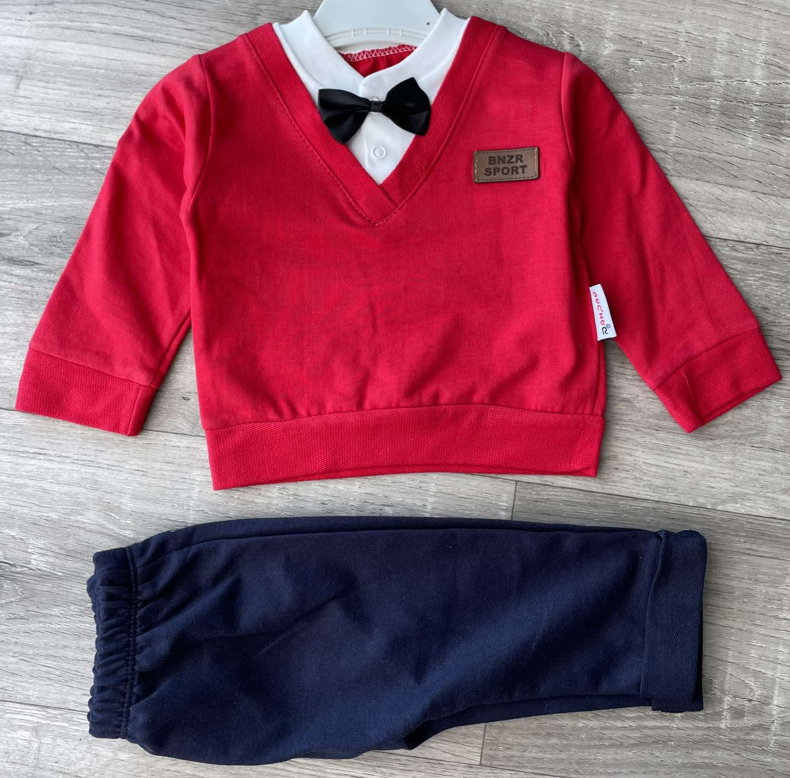 Костюм Benzer "Однотонний" червоний+синій, хлопчик 9-12-18 місяців оптом уп. - 3 шт.