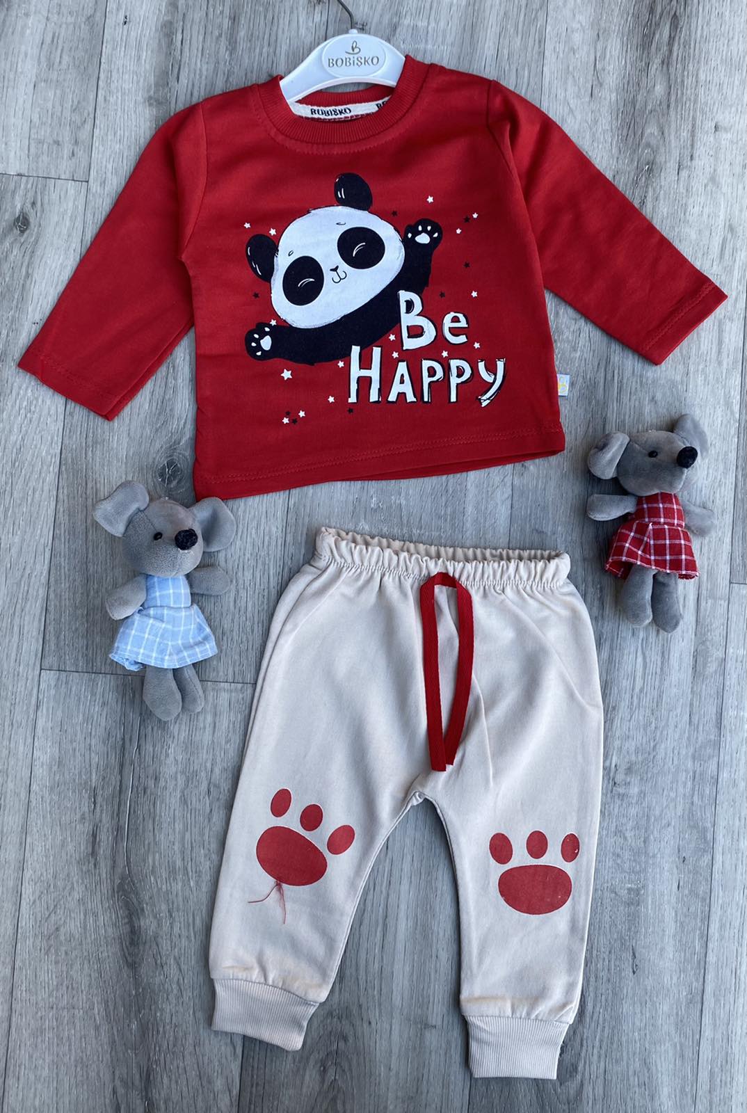 Костюм Bobisko "Be Happy" красный, мальчик 9-12-18-24 месяцев оптом уп. - 4 шт.