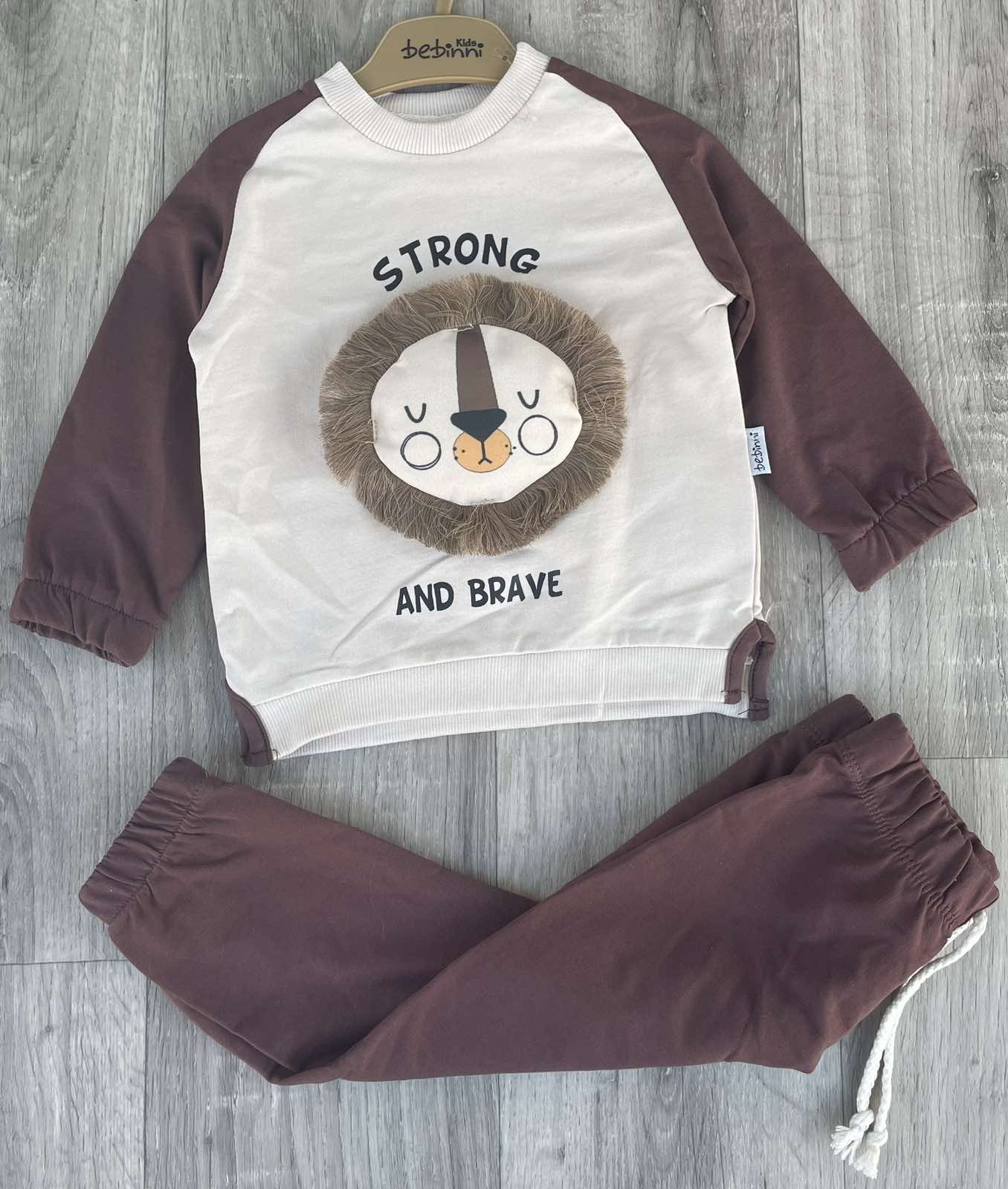 Костюм Dedinni «Strong and brave» бурый, мальчик 6-9-12-18 месяцев оптом уп. - 4 шт.