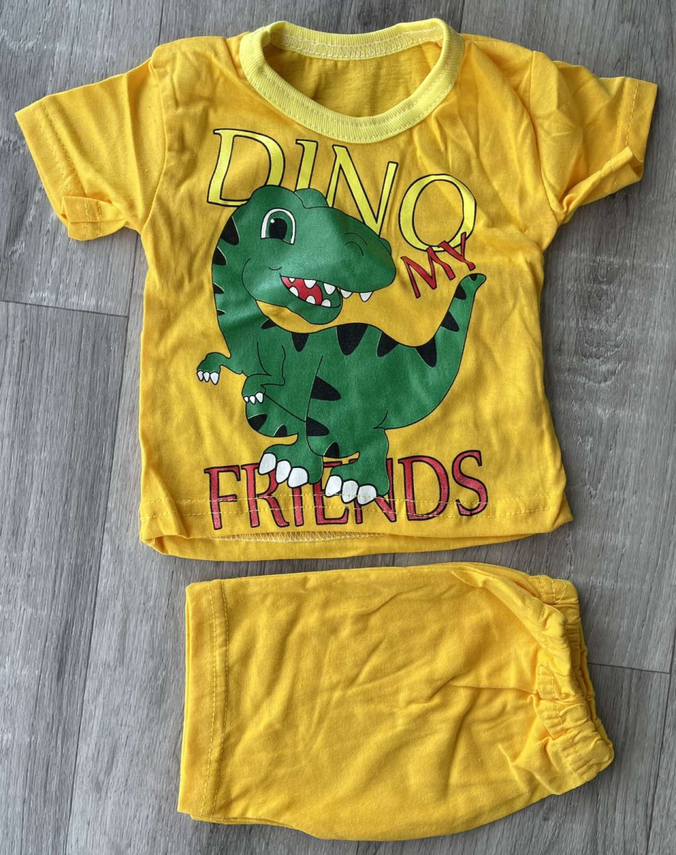 Костюм «Dino Friends» жёлтый, мальчик 6-9-12-24 месяцев оптом уп. - 4 шт.