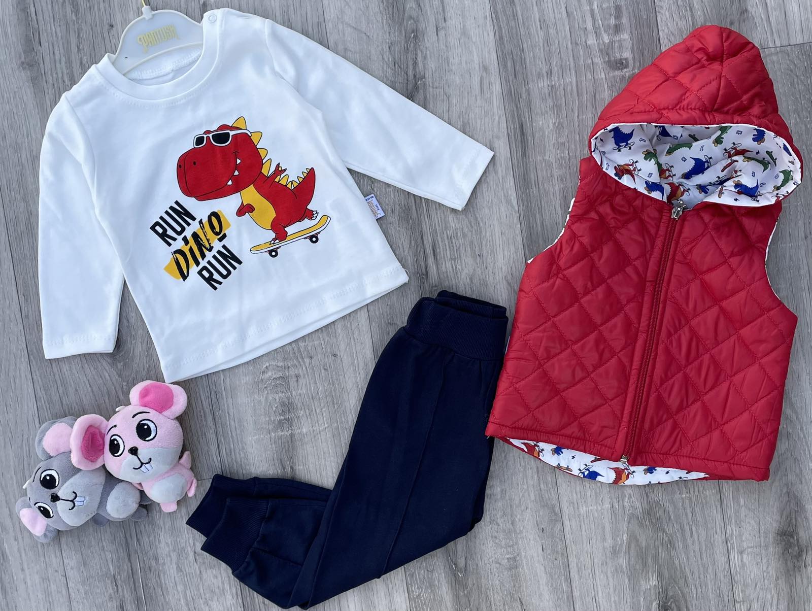 Костюм E.K.Y. "Run Dino run" красный, мальчик 12-18-24 месяцев оптом уп. - 3 шт.
