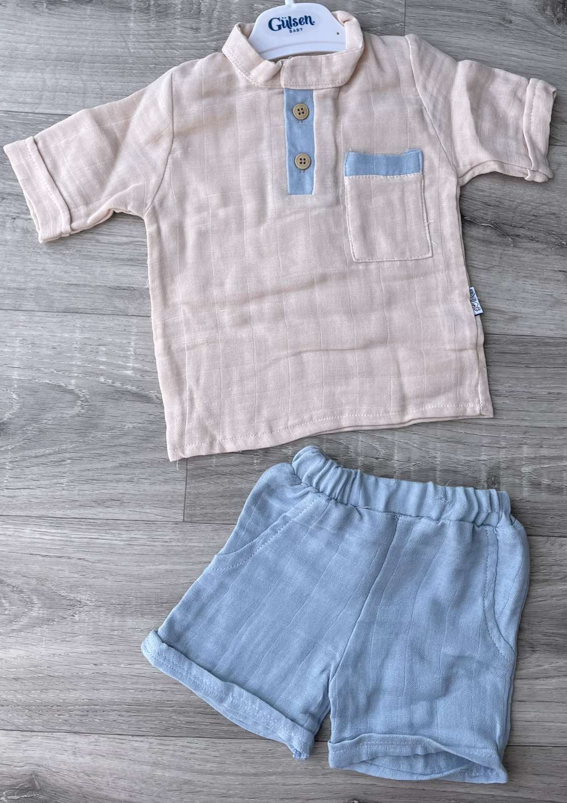 Костюм Gulsen «Кармашек» голубой, мальчик 6-9-12-18 месяцев оптом уп. - 4 шт.