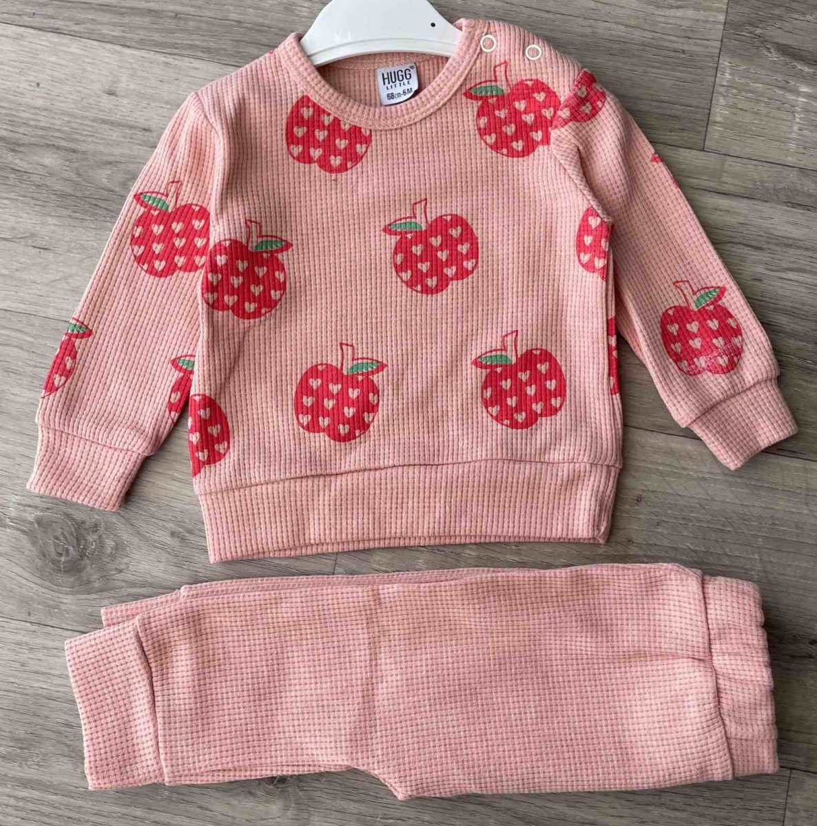 Костюм Hugg "Яблочки" персиковый, девочка 6-9-12-18 месяцев оптом уп. - 4 шт.