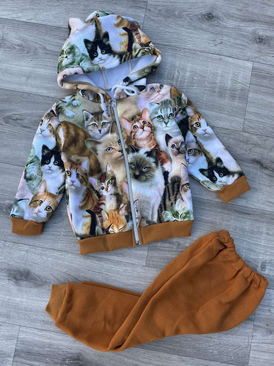 Костюм «Кошечки» горчичный, девочка 6-9-12 месяцев оптом уп. - 3 шт.