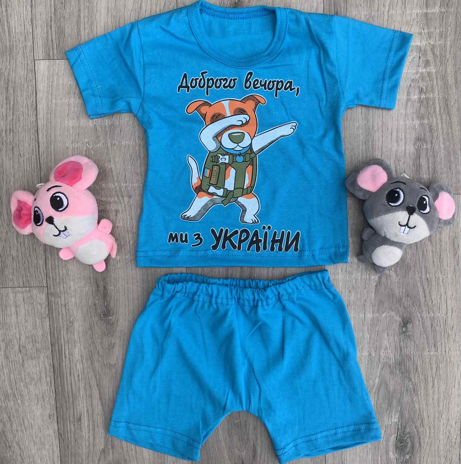 Костюм "Ми з України!" голубой, мальчик 6-9-12-18 месяцев оптом уп. - 4 шт.
