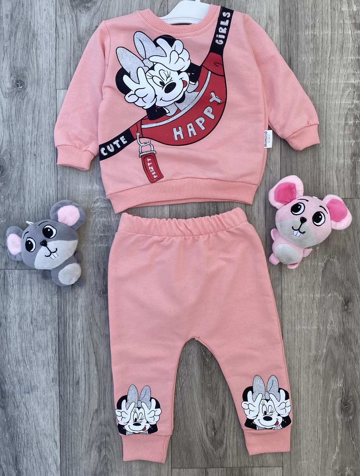 Костюм Mimiico "Happy" персиковый, девочка 9-12-18-24 месяцев оптом уп. - 4 шт.